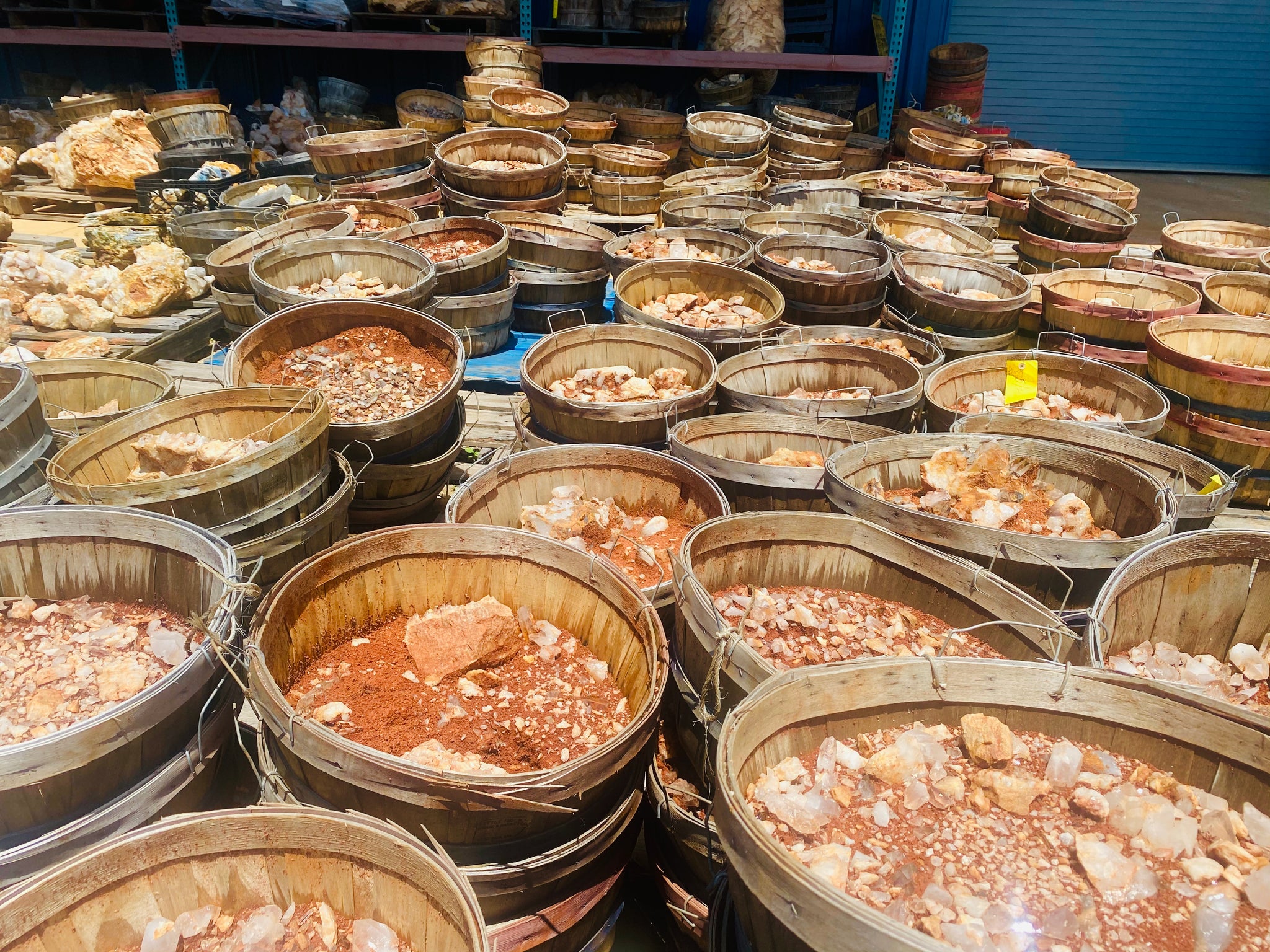 Unsorted dirt bushels with quartz crystals from Fisher Mountain