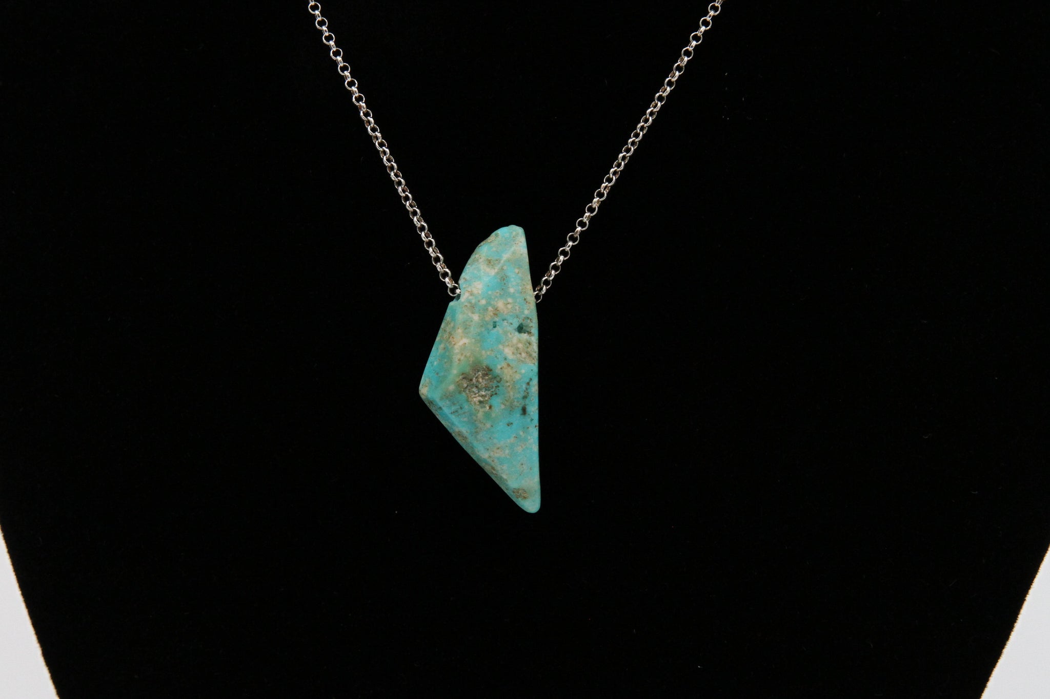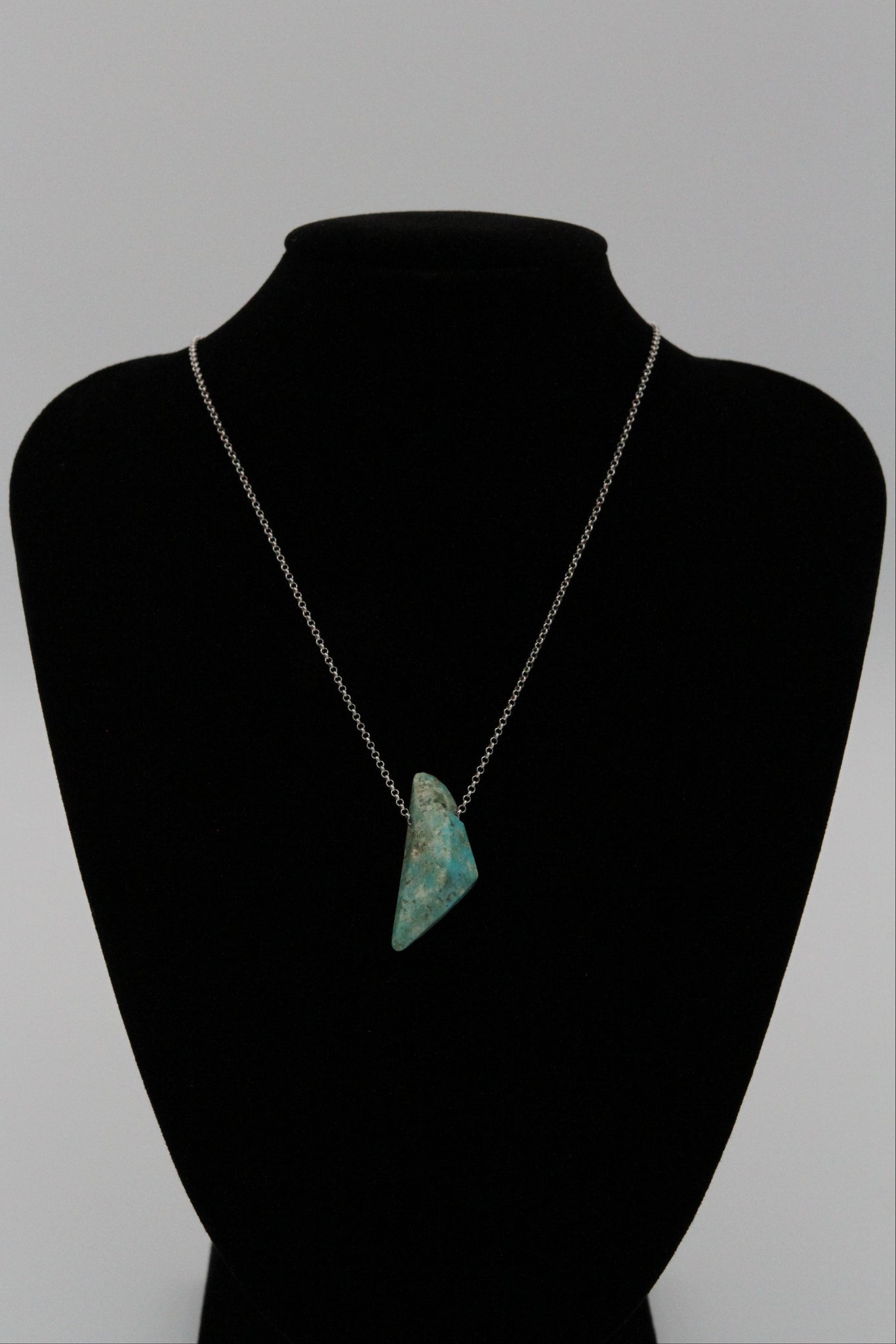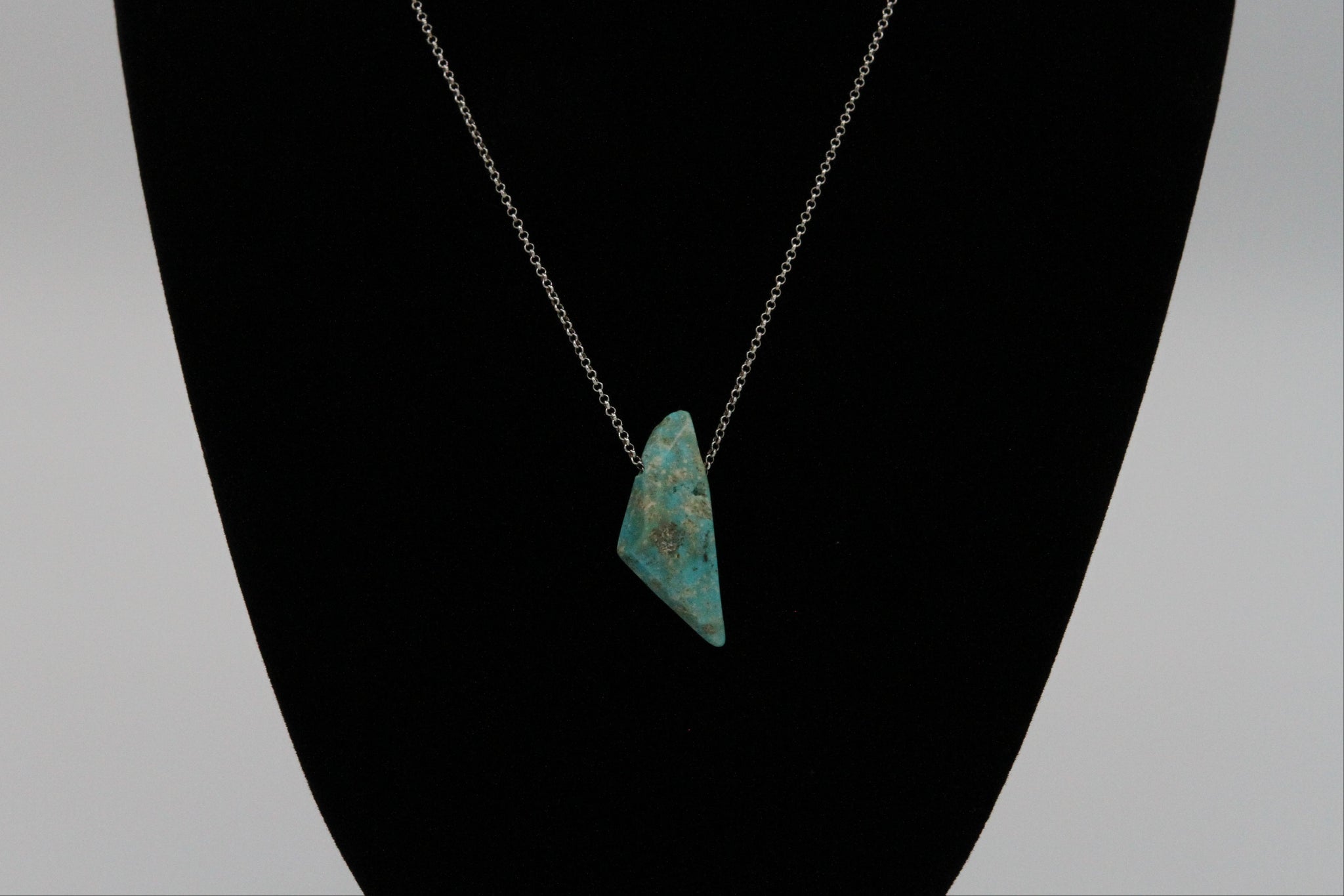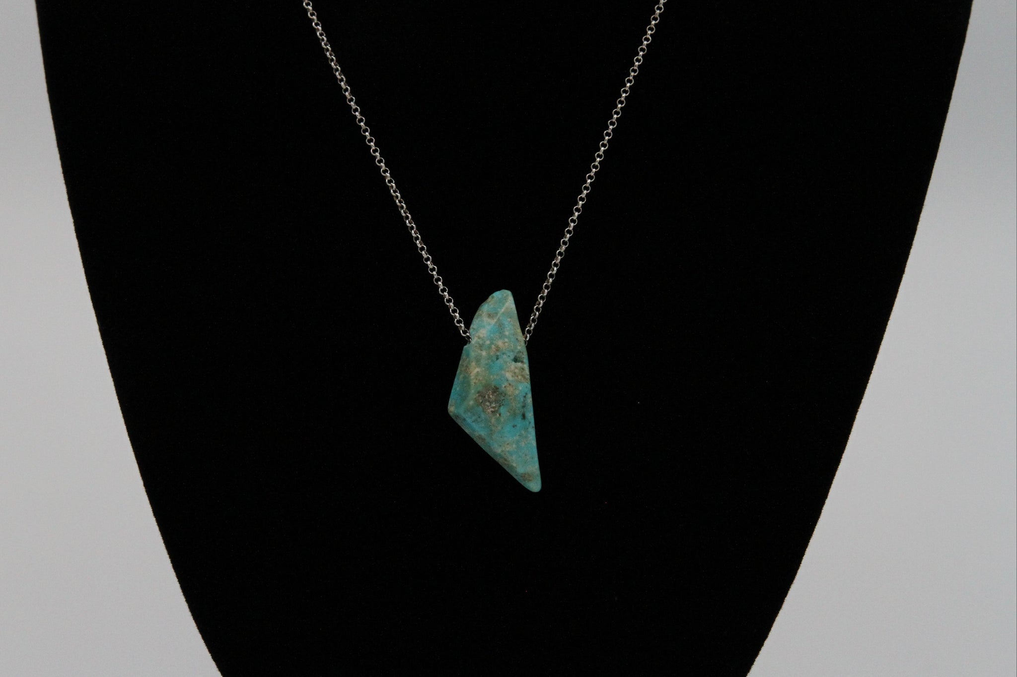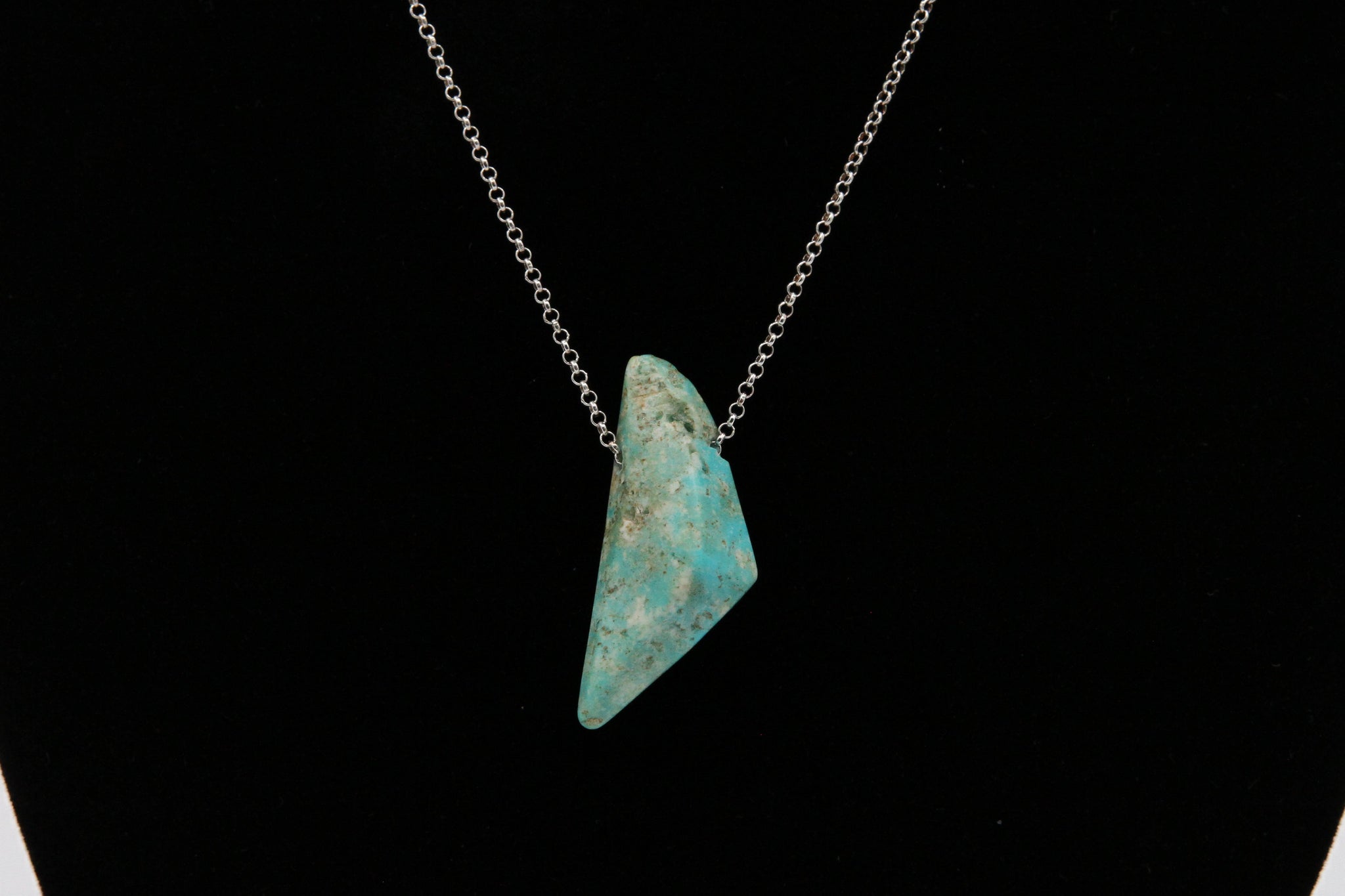 This beautiful blue freeform nugget necklace from the Mona Lisa Mine would be the perfect addition to anyone's jewelry collection! One of a kind, shaped and polished with the iconic creamy veins and sky blue color that Mona Lisa Turquoise is known for.