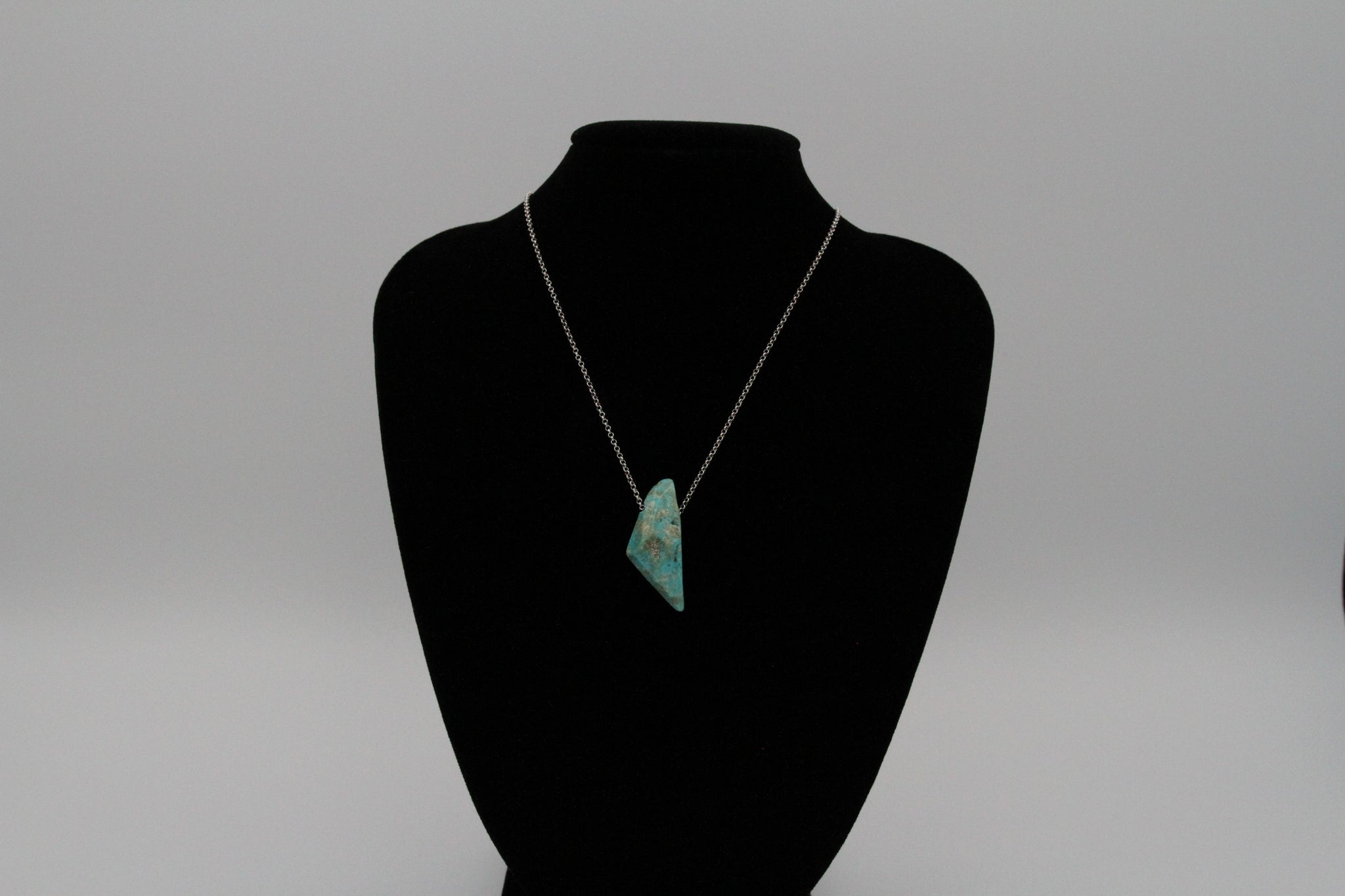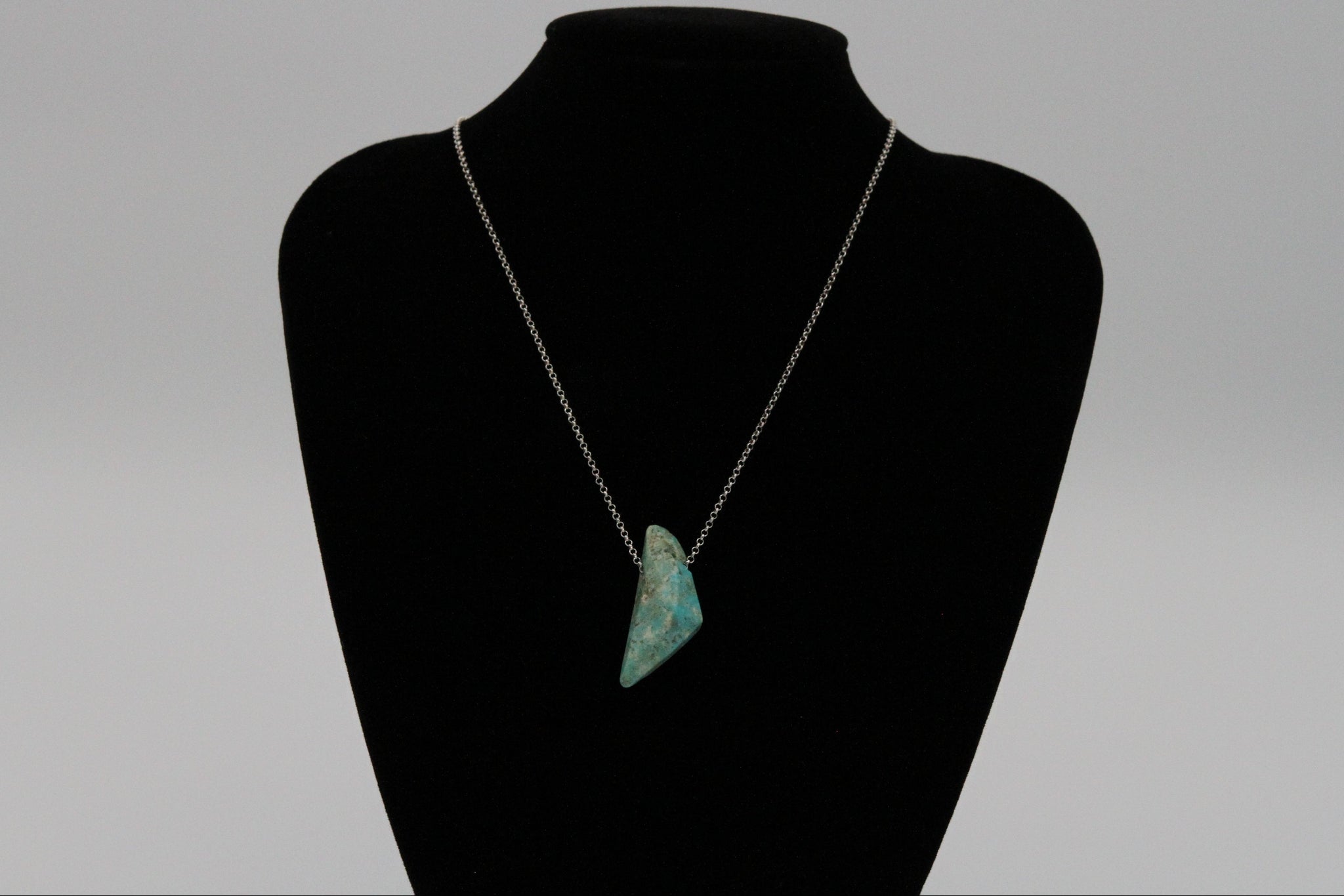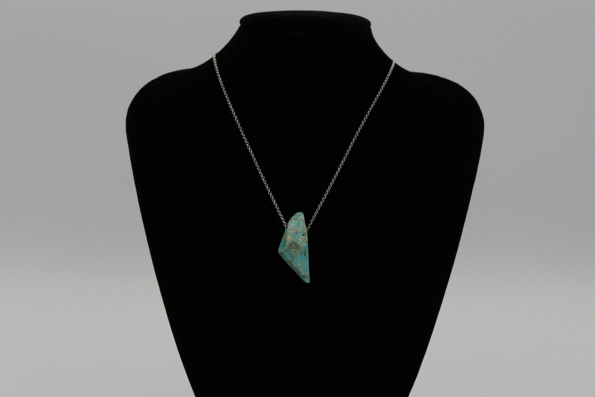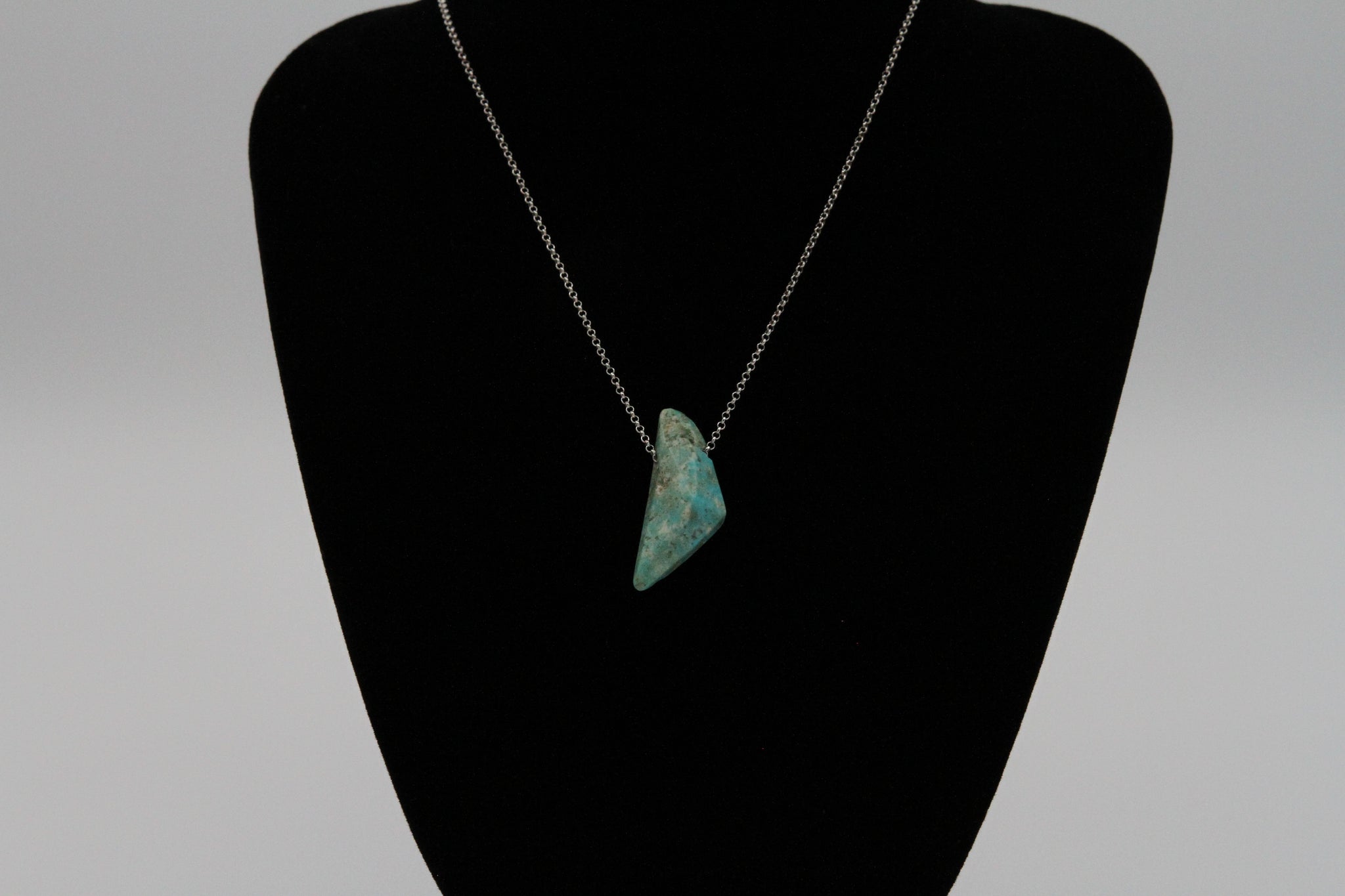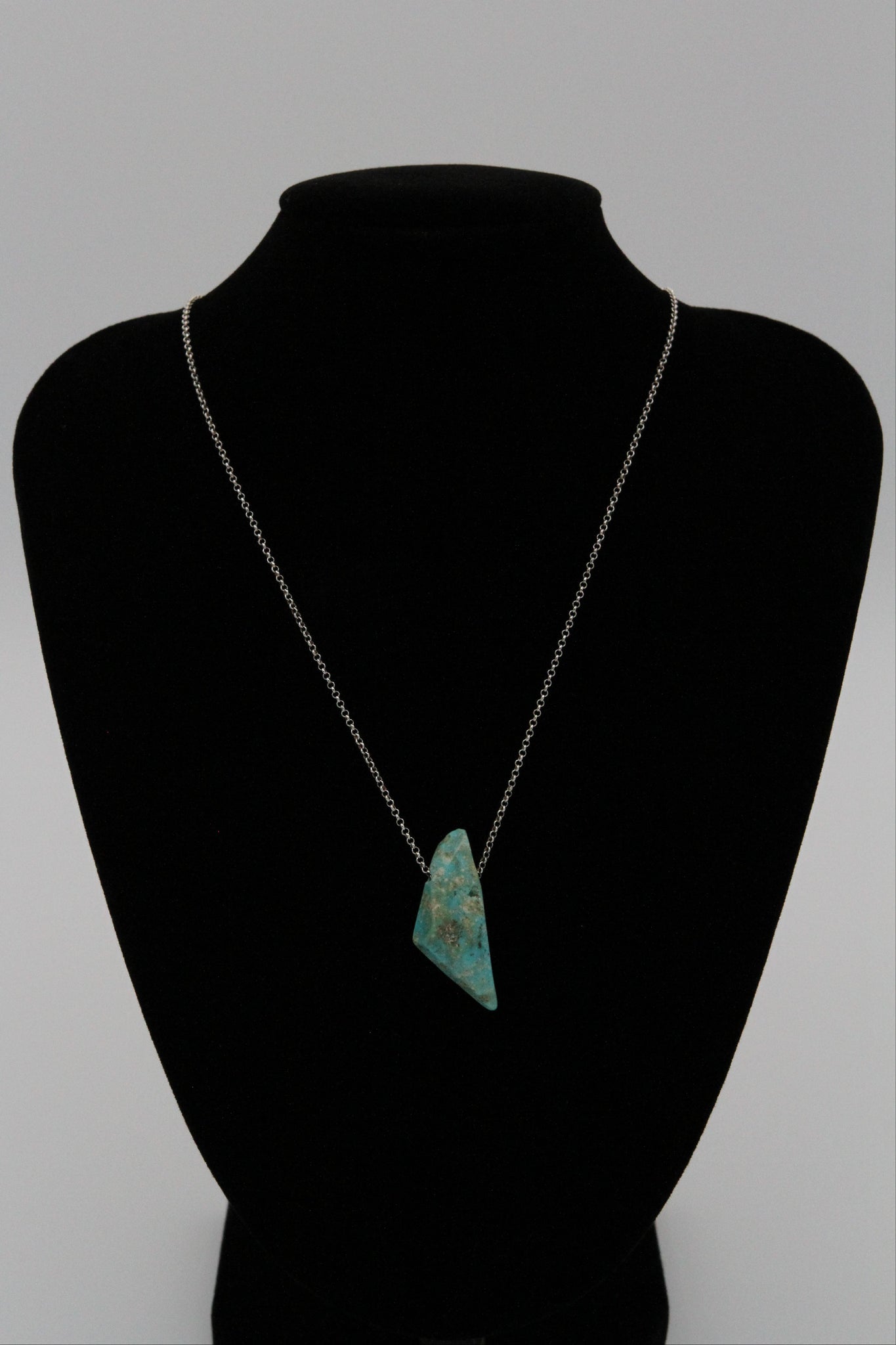This beautiful blue freeform nugget necklace from the Mona Lisa Mine would be the perfect addition to anyone's jewelry collection! One of a kind, shaped and polished with the iconic creamy veins and sky blue color that Mona Lisa Turquoise is known for.