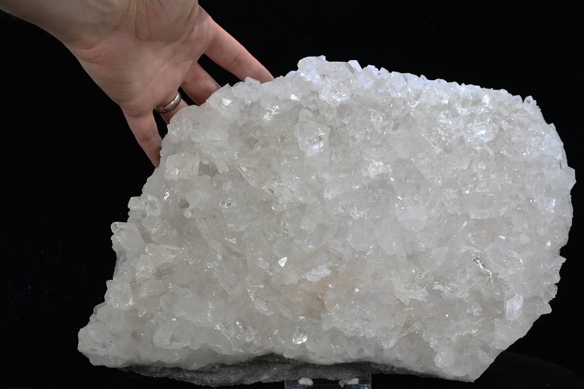 A large home décor quartz crystal cluster from our Garfield Lewis Claim, Fisher Mountain, Montgomery County Arkansas. 14in x 10in x 4.5in. 15.8 lbs . SN AM000036.