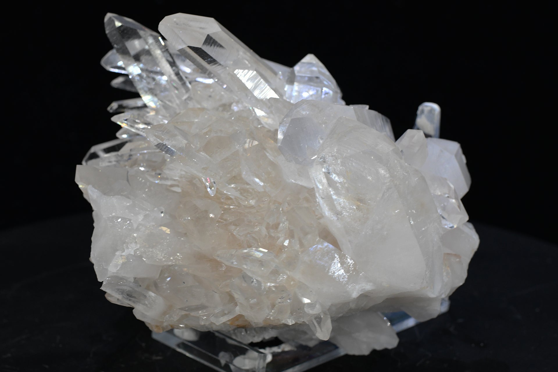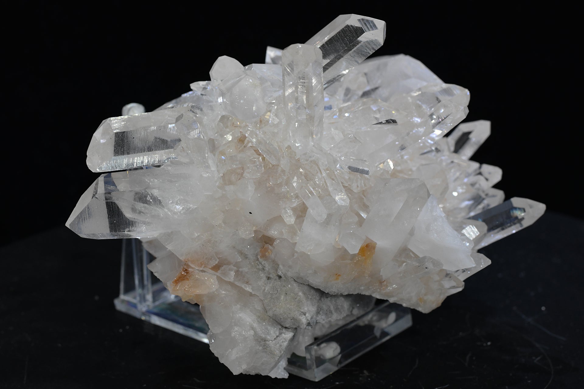 A medium collector specimen quartz crystal cluster from our Garfield Lewis Claim, Fisher Mountain, Montgomery County Arkansas. 6in x 4in x 4.5in. 2.8 lbs. SN AM000054.