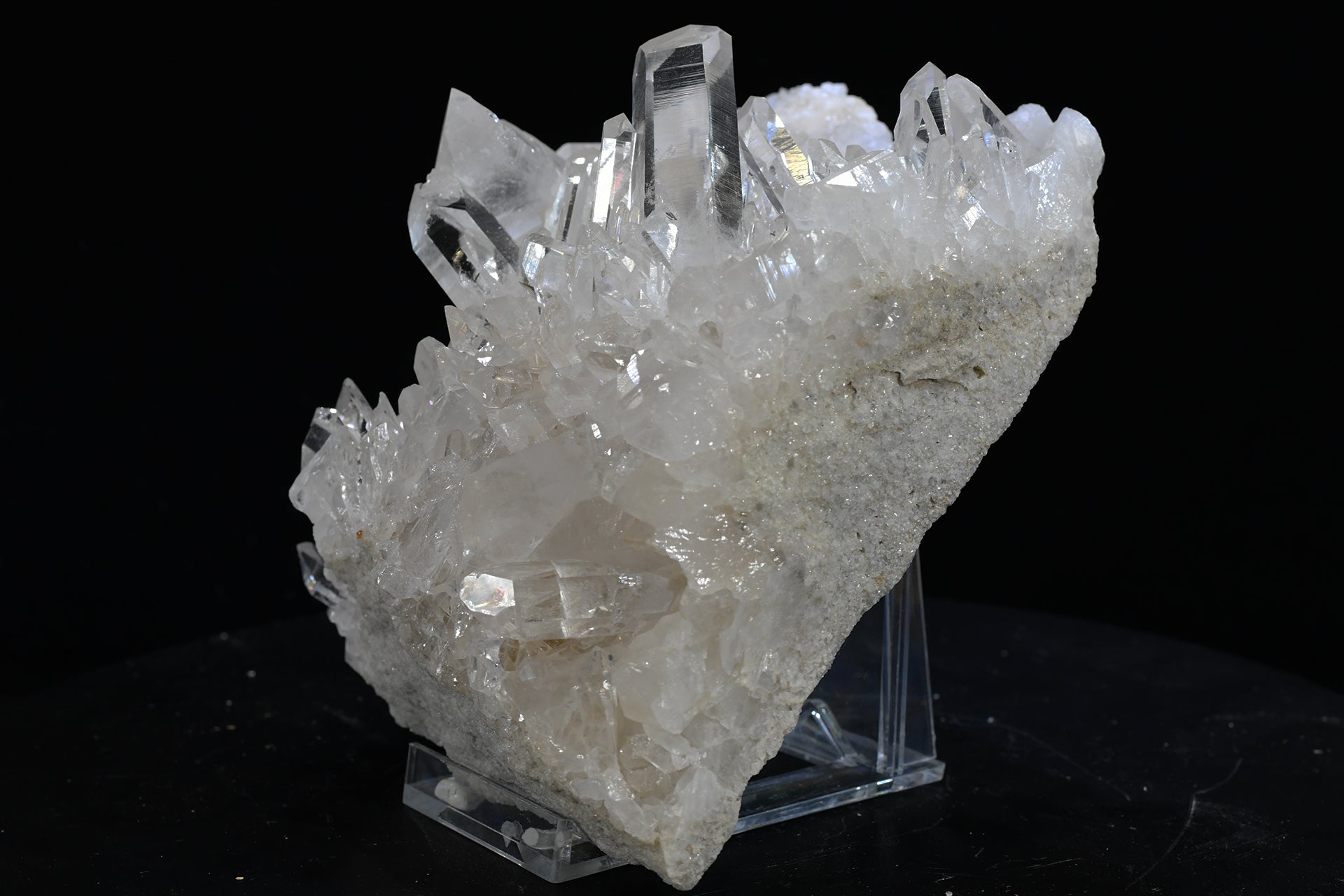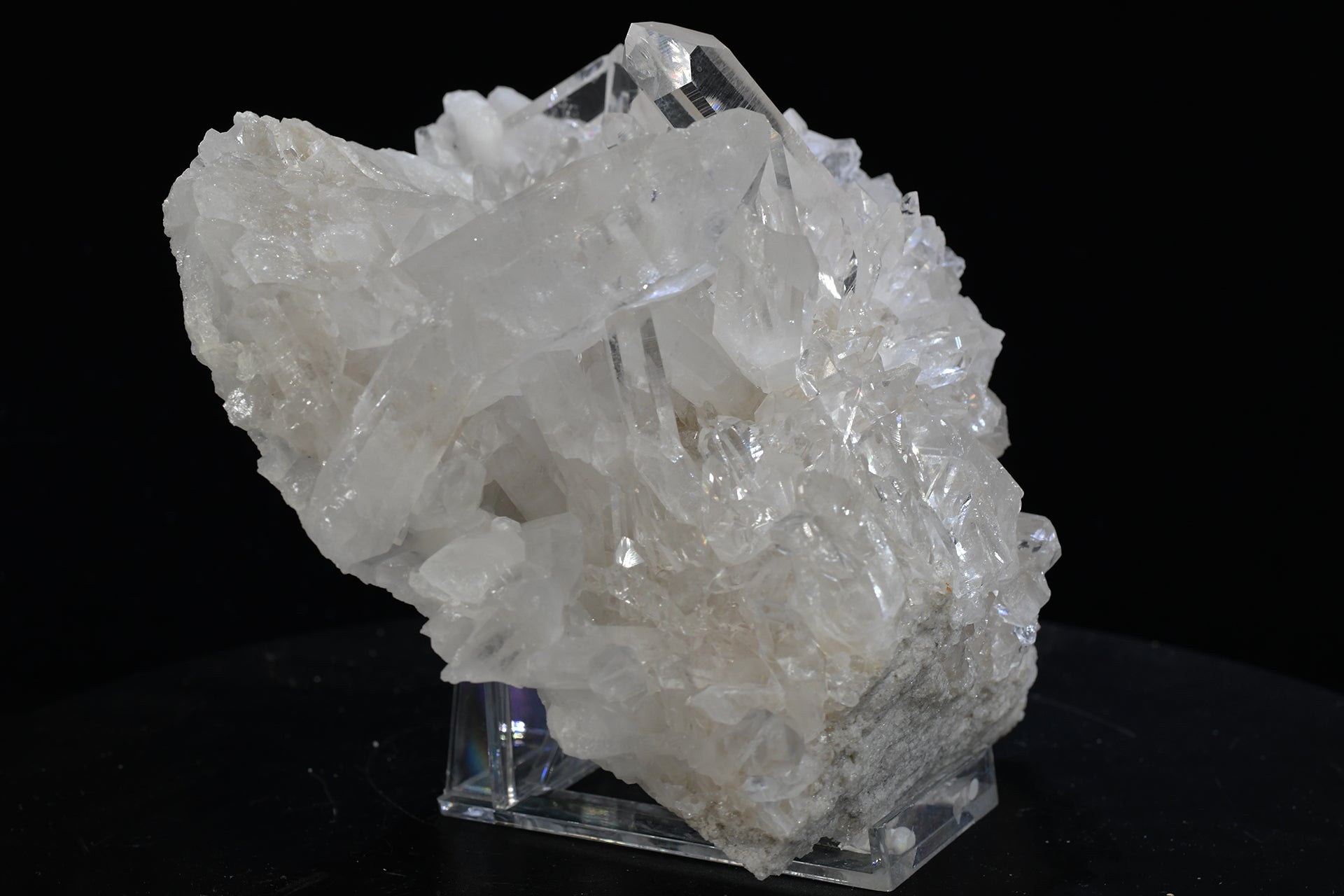 A medium beautiful and affordable quartz crystal cluster from our Garfield Lewis Claim, Fisher Mountain, Montgomery County Arkansas. 6in x 7in x 3in. 4.4 lbs. SN AM000045.