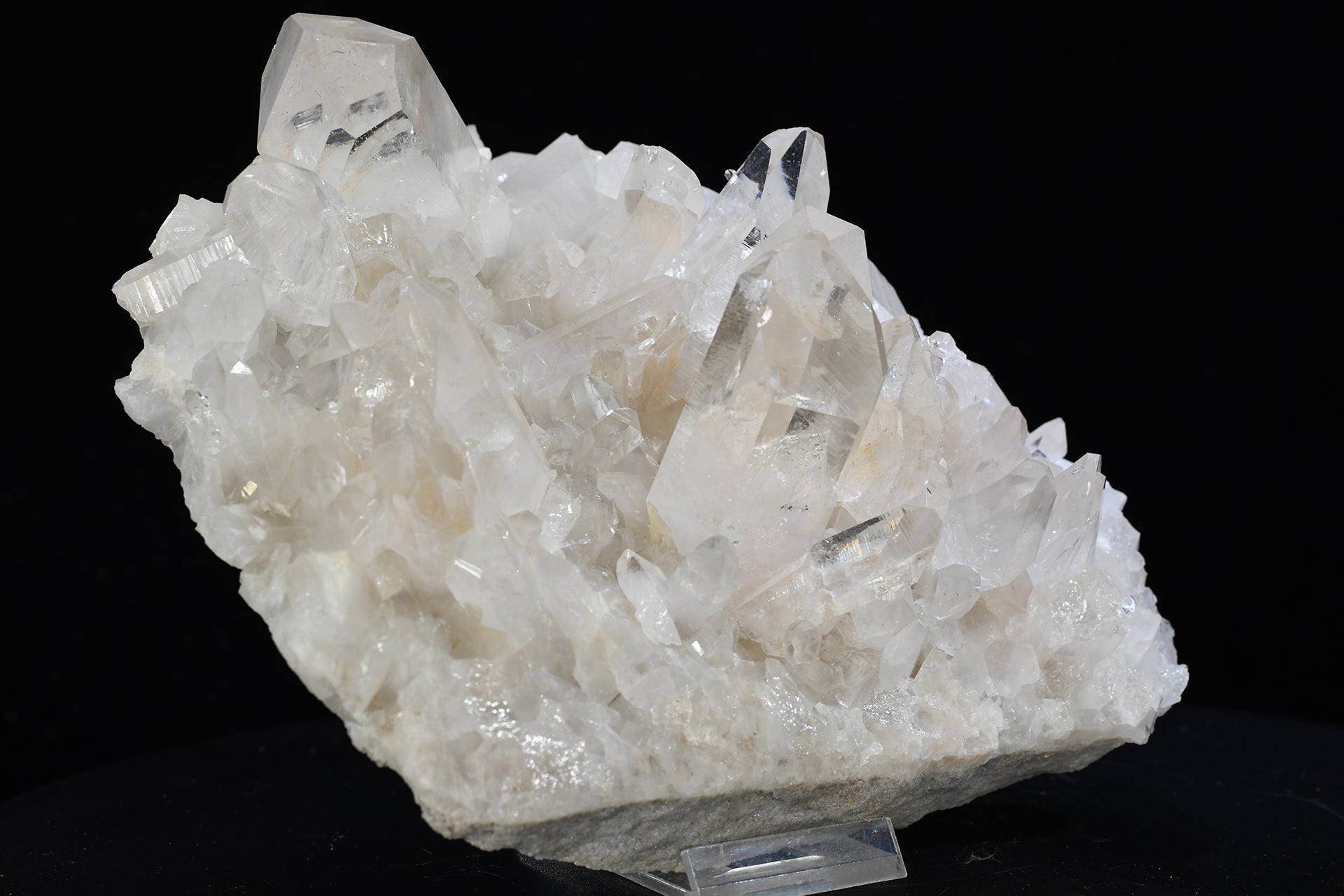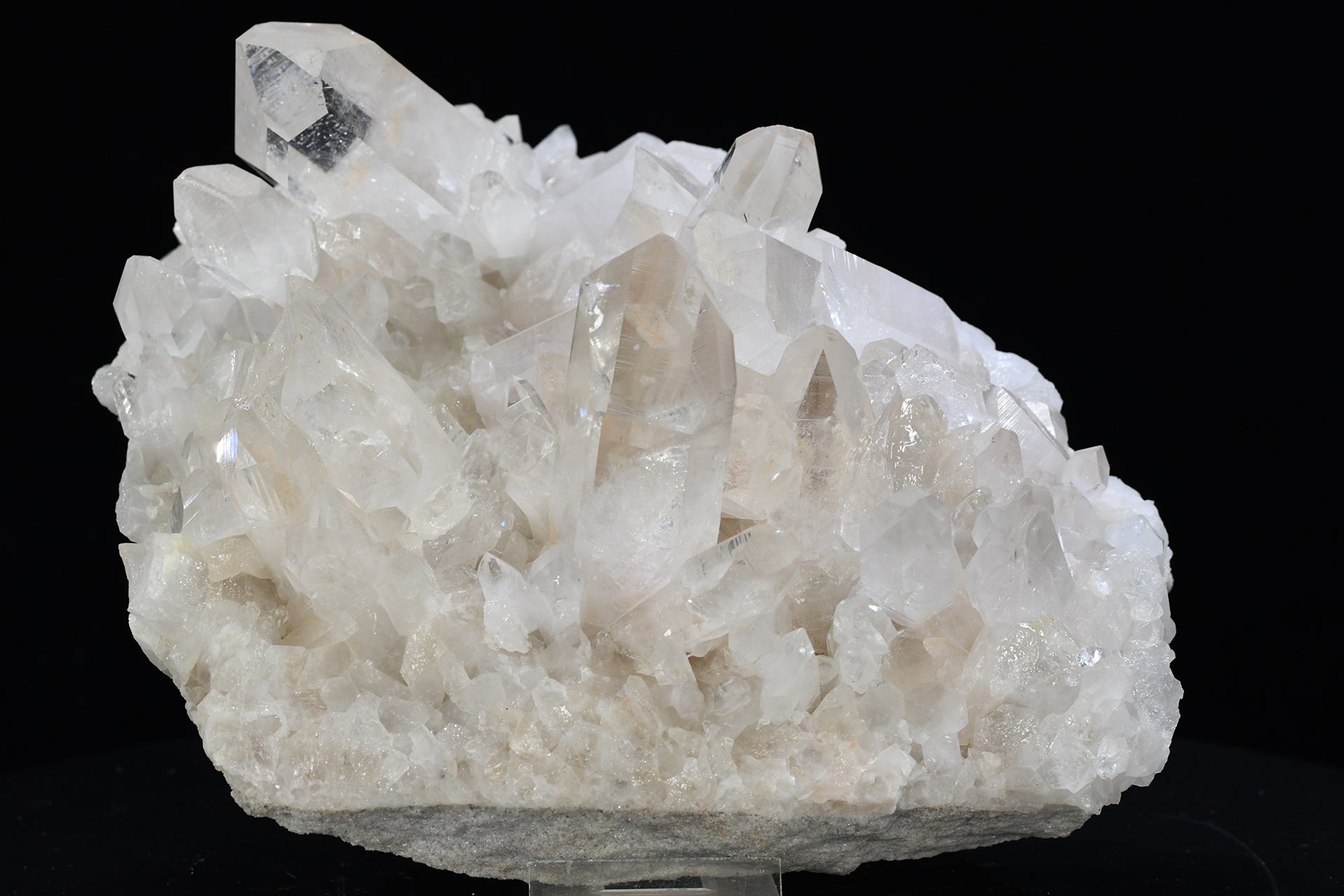 A medium sized quartz crystal cluster from the Garfield Lewis Claim, Fisher Mountain, Montgomery County Arkansas. 7.5in x 6.5in x 3.5in. This Quartz Crystal Cluster's unique number is AM000023.