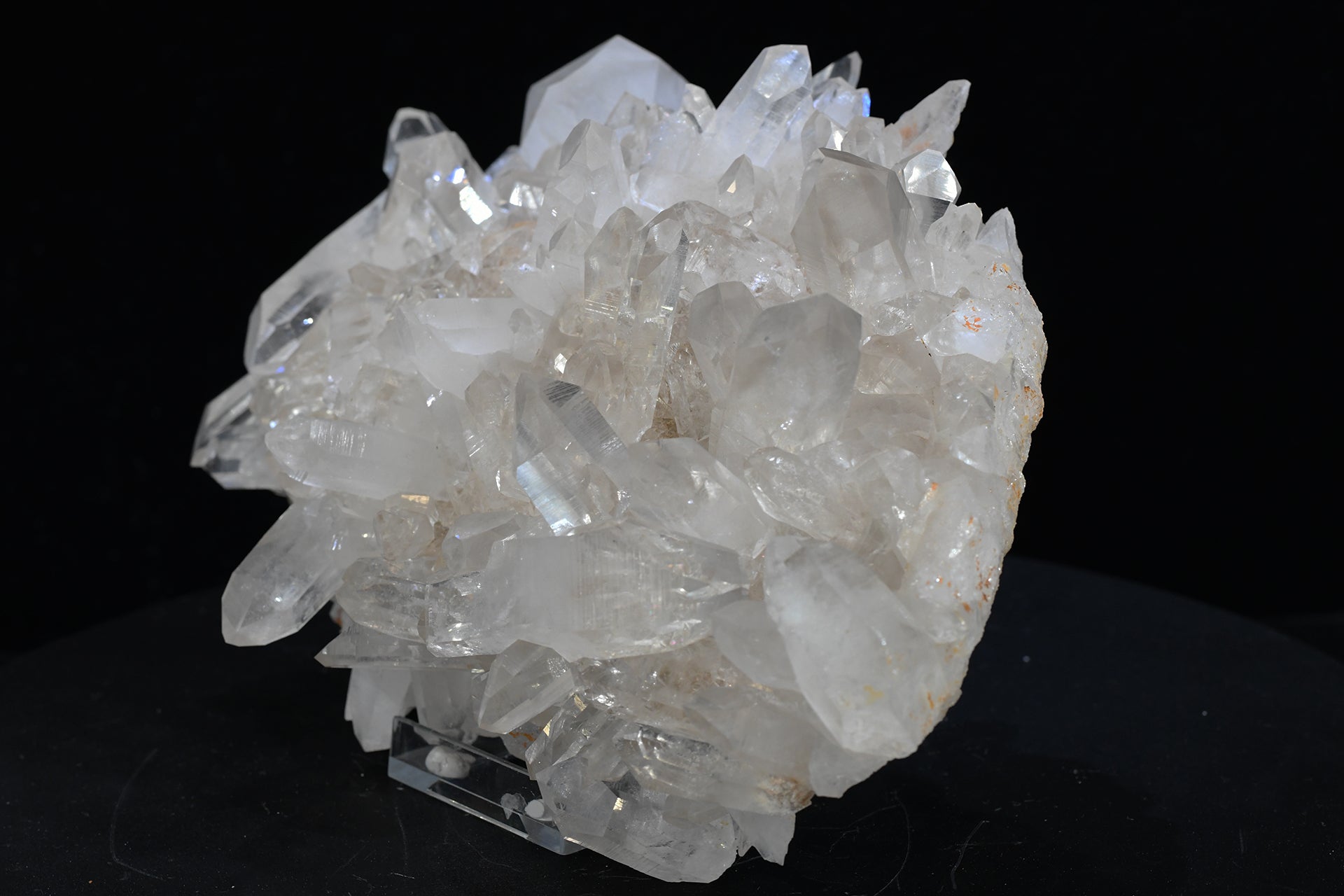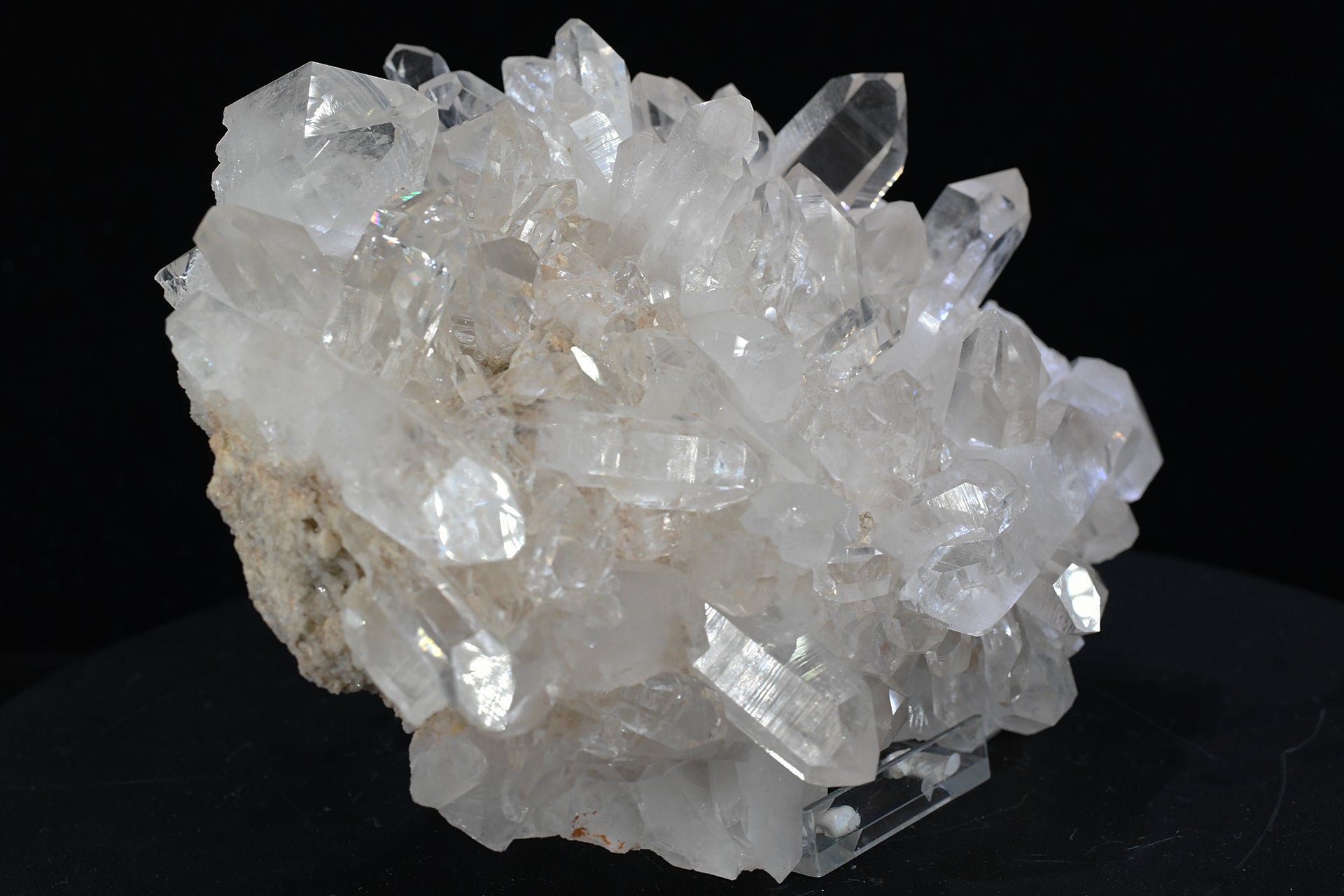 A medium collector specimen quartz crystal cluster from our Garfield Lewis Claim, Fisher Mountain, Montgomery County Arkansas. 8in x 7in x 2.5in. 4.7 lbs. SN AM000056.