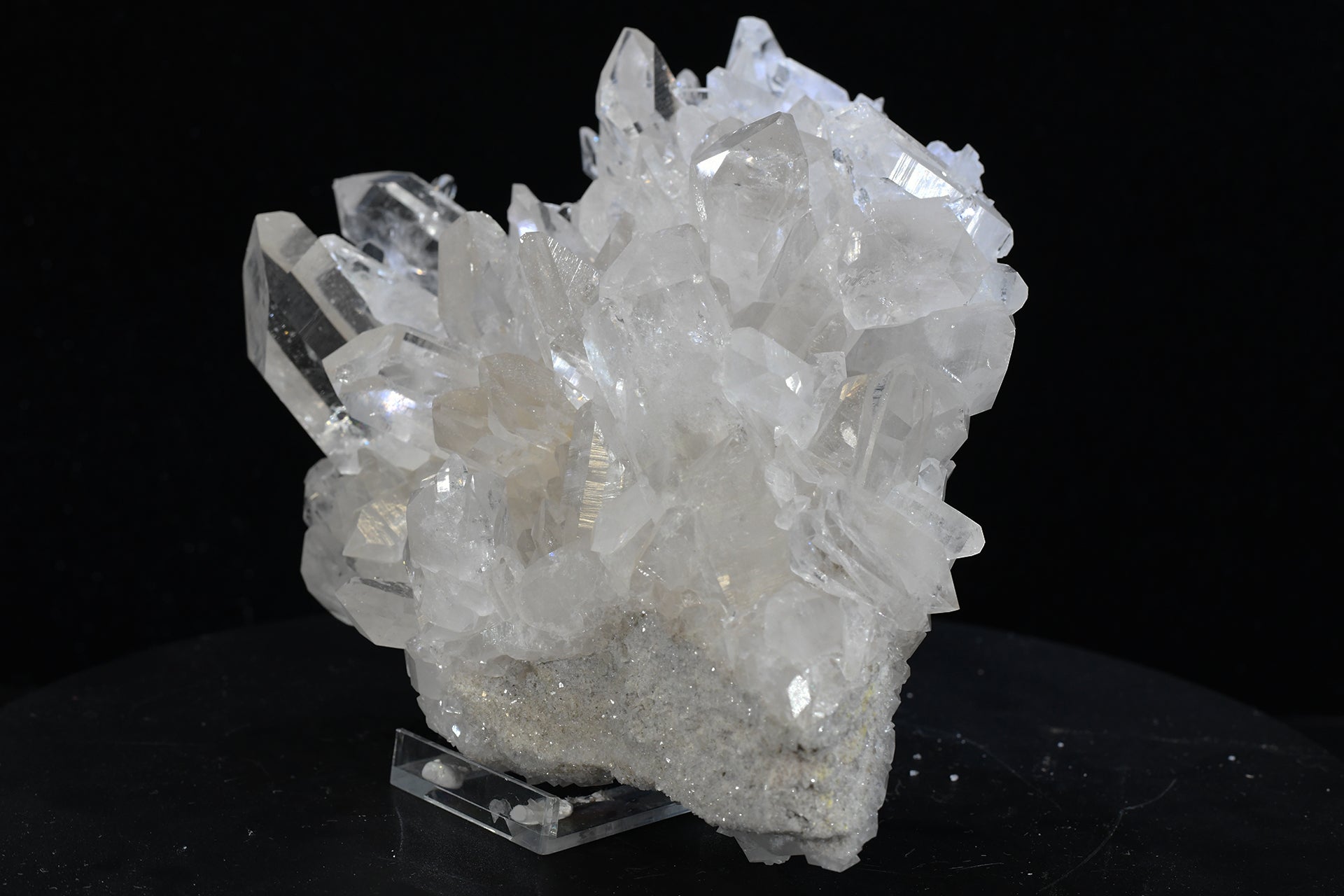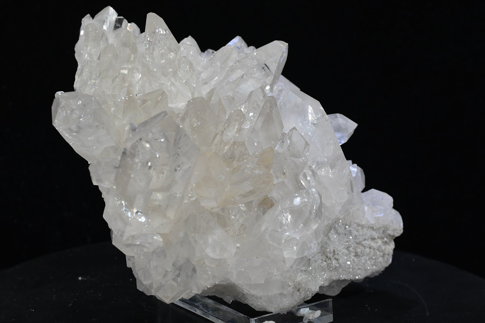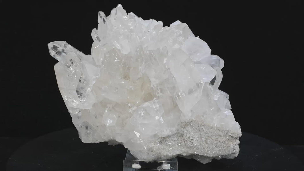 A medium collector specimen quartz crystal cluster from our Garfield Lewis Claim, Fisher Mountain, Montgomery County Arkansas. 9in x 7in x 4in. 5.4 lbs. SN AM000051.