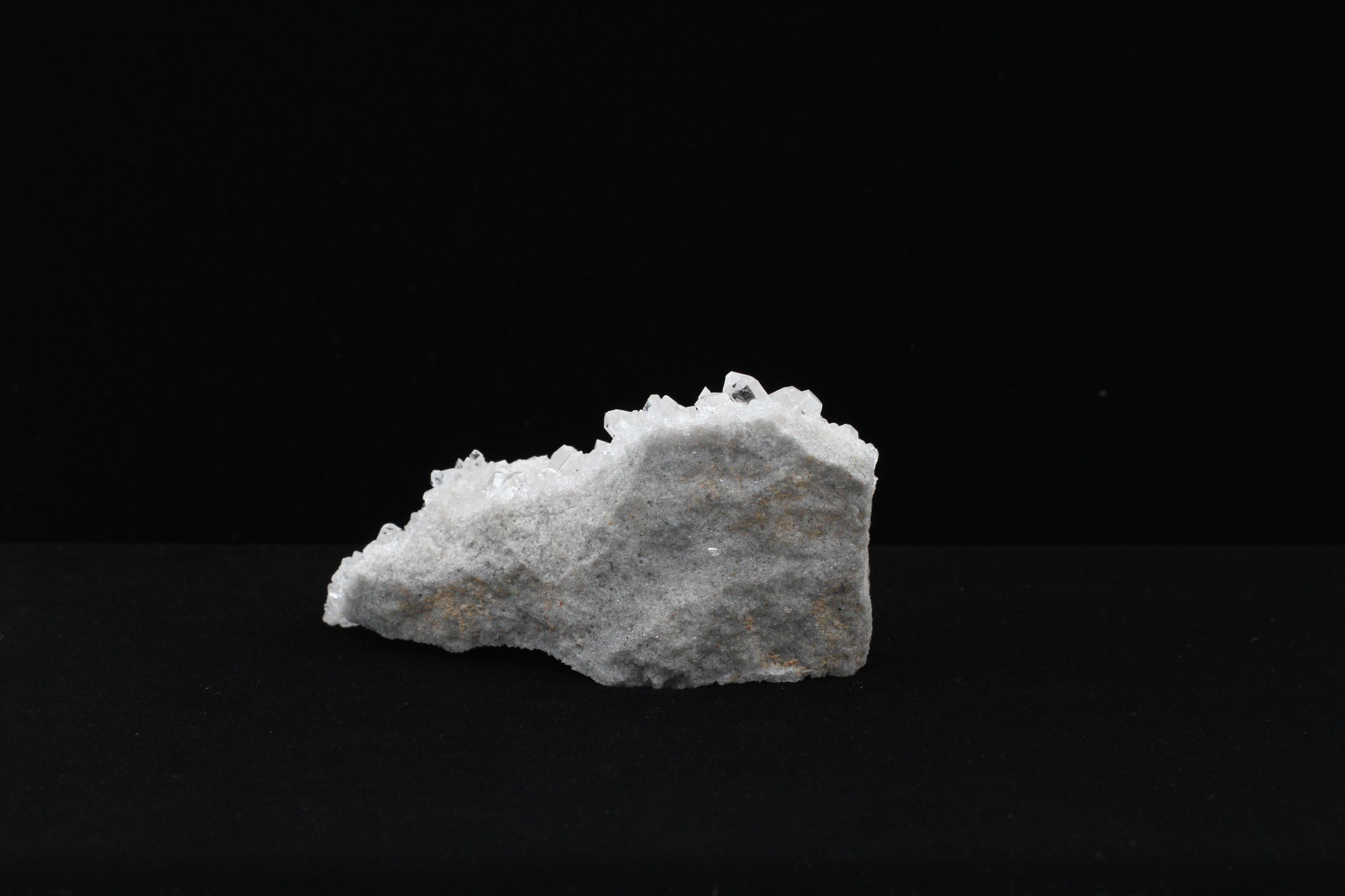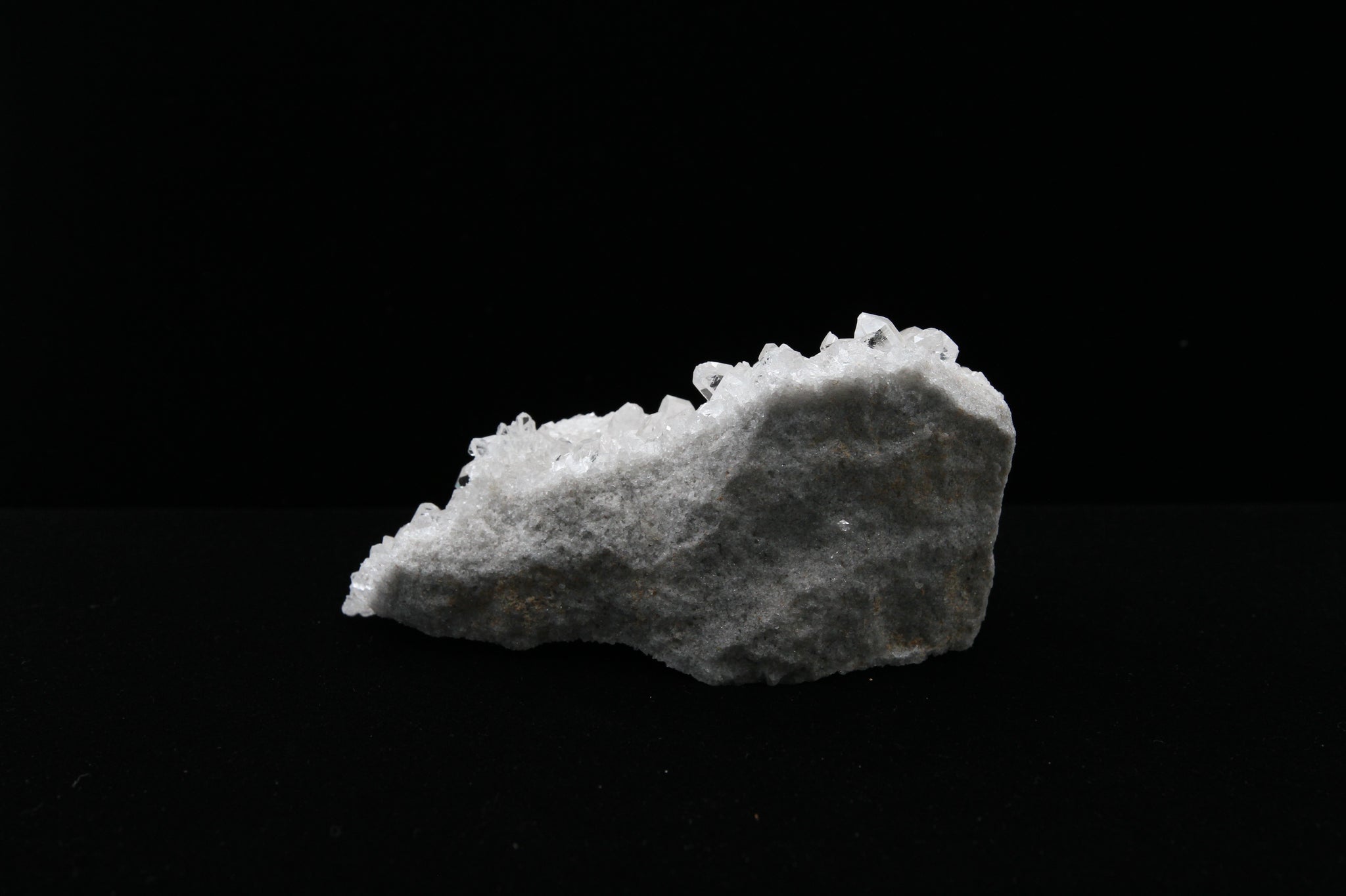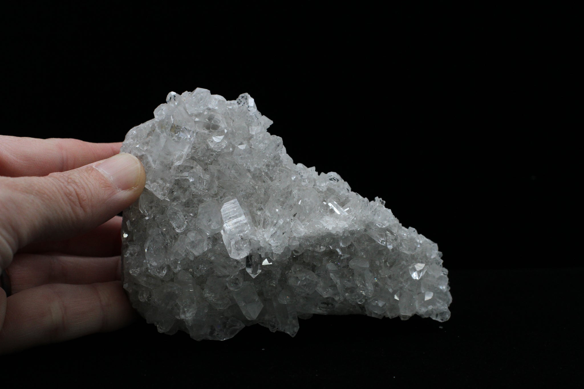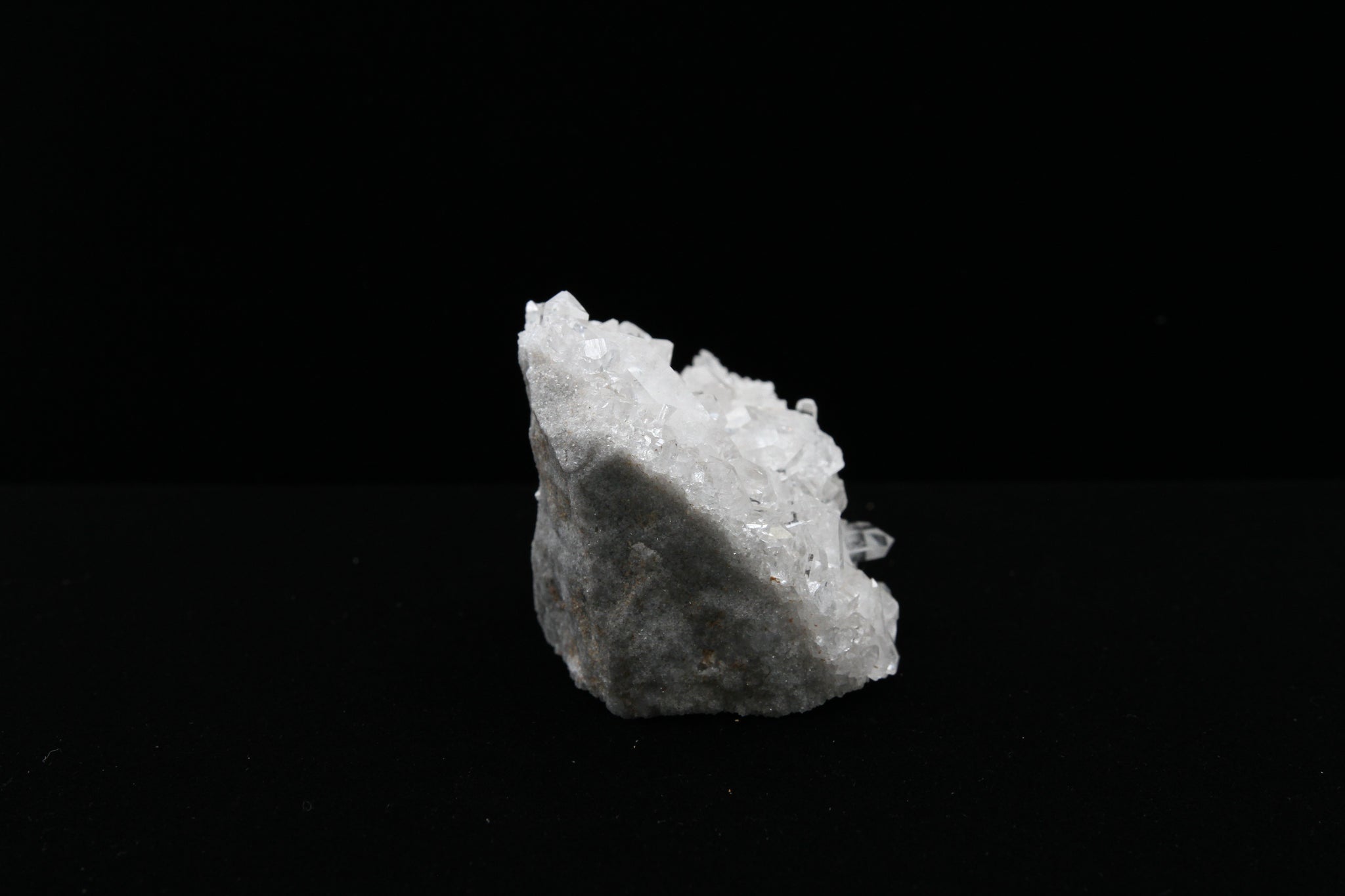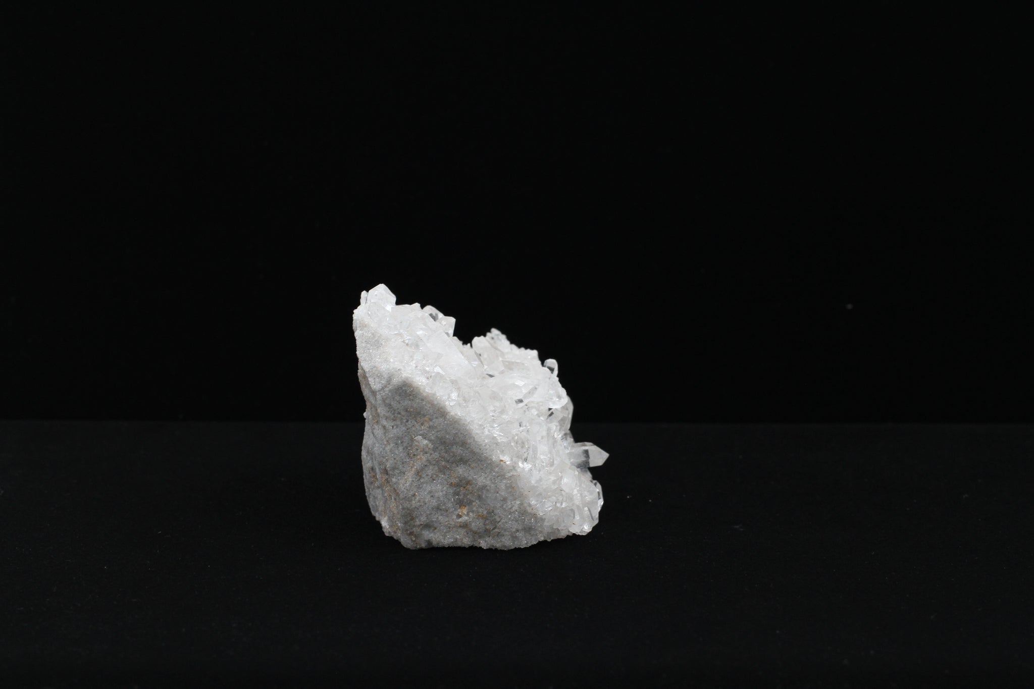 A mini sized quartz crystal cluster from the Garfield Lewis Claim, Fisher Mountain, Montgomery County Arkansas. Laying on side 9cm long x 4cm wide x 5cm tall. Standing upright 9cm tall x 7cm wide x 4cm deep. 208grams. This Quartz Crystal Cluster's unique number is AM000100.