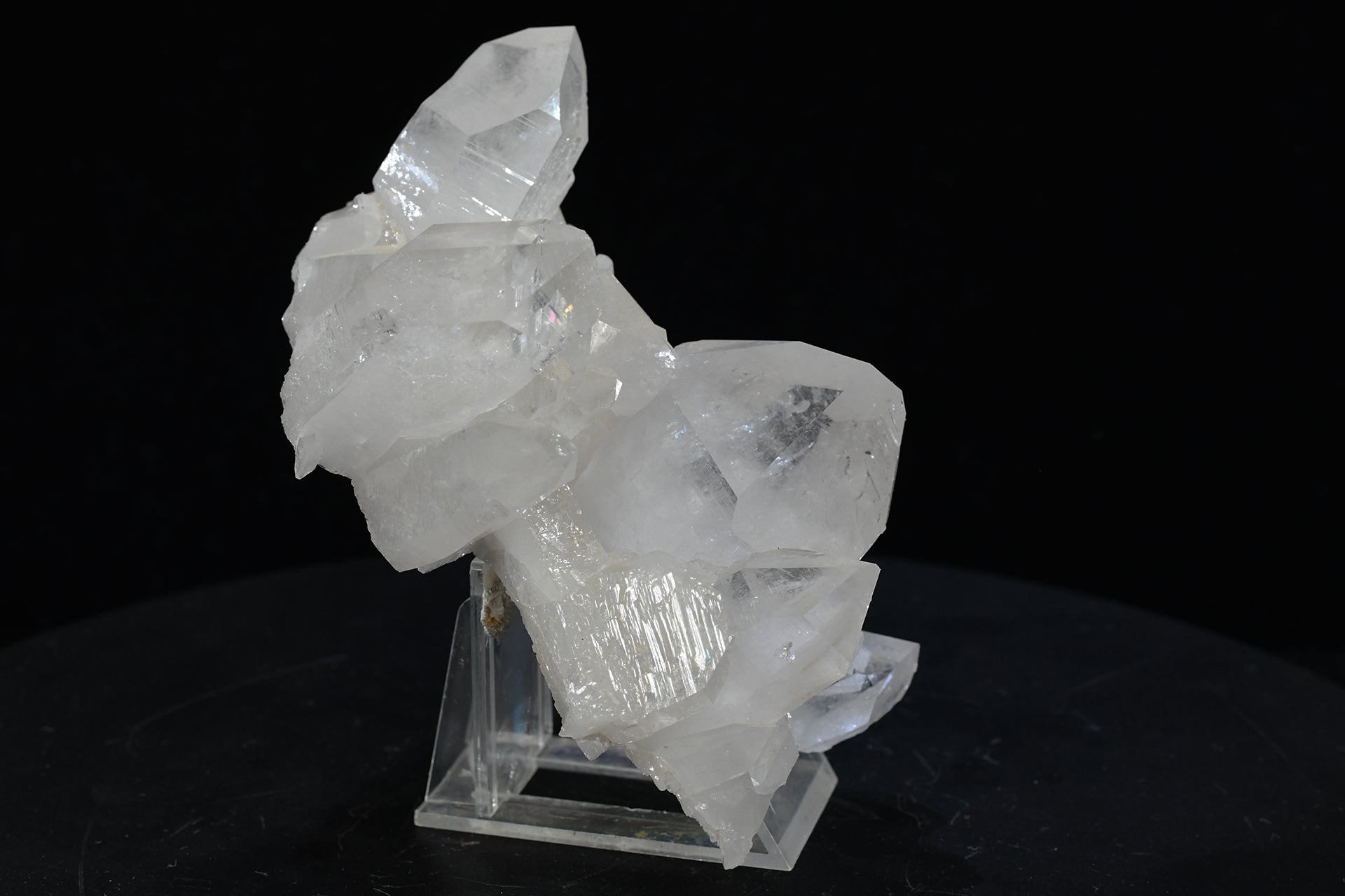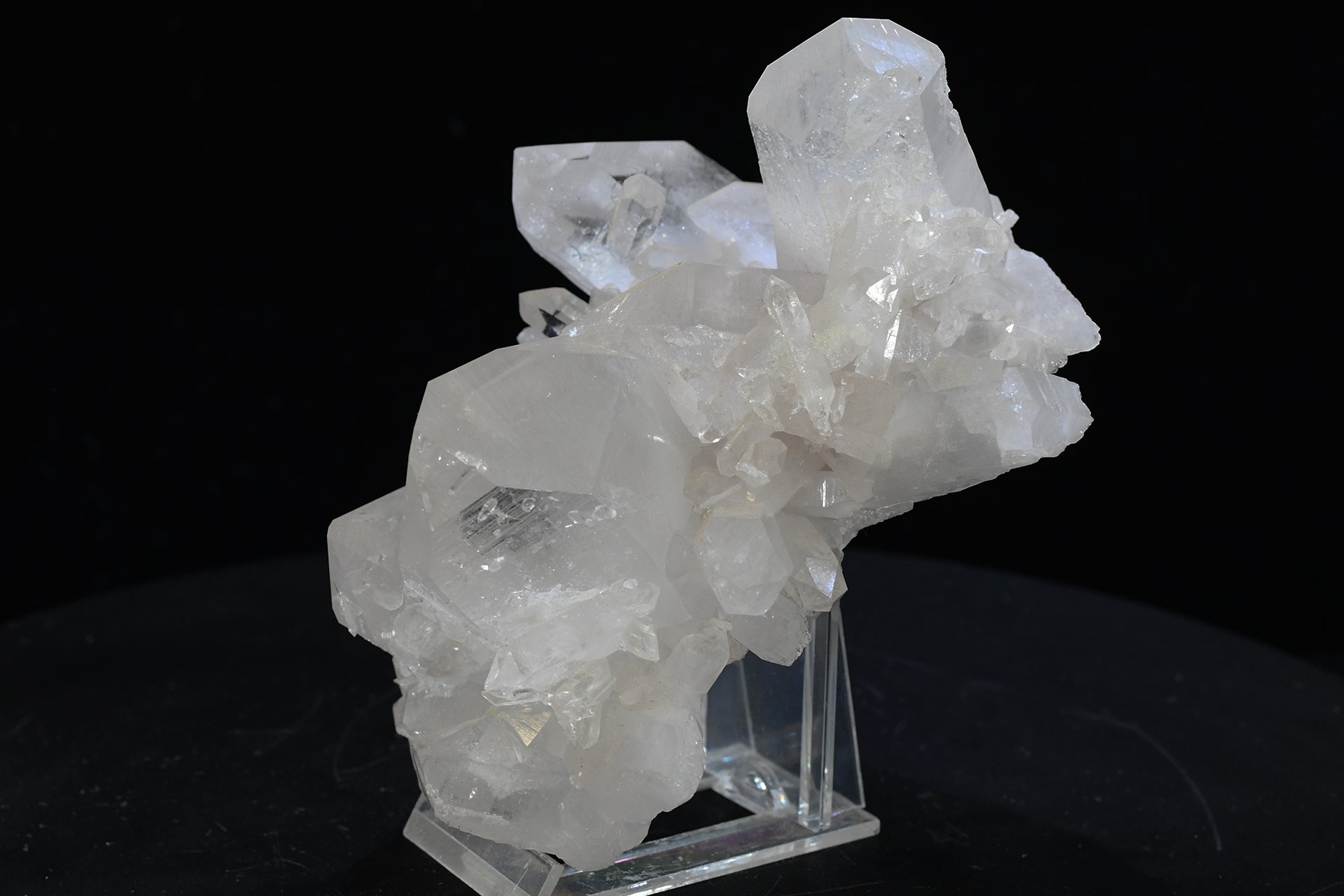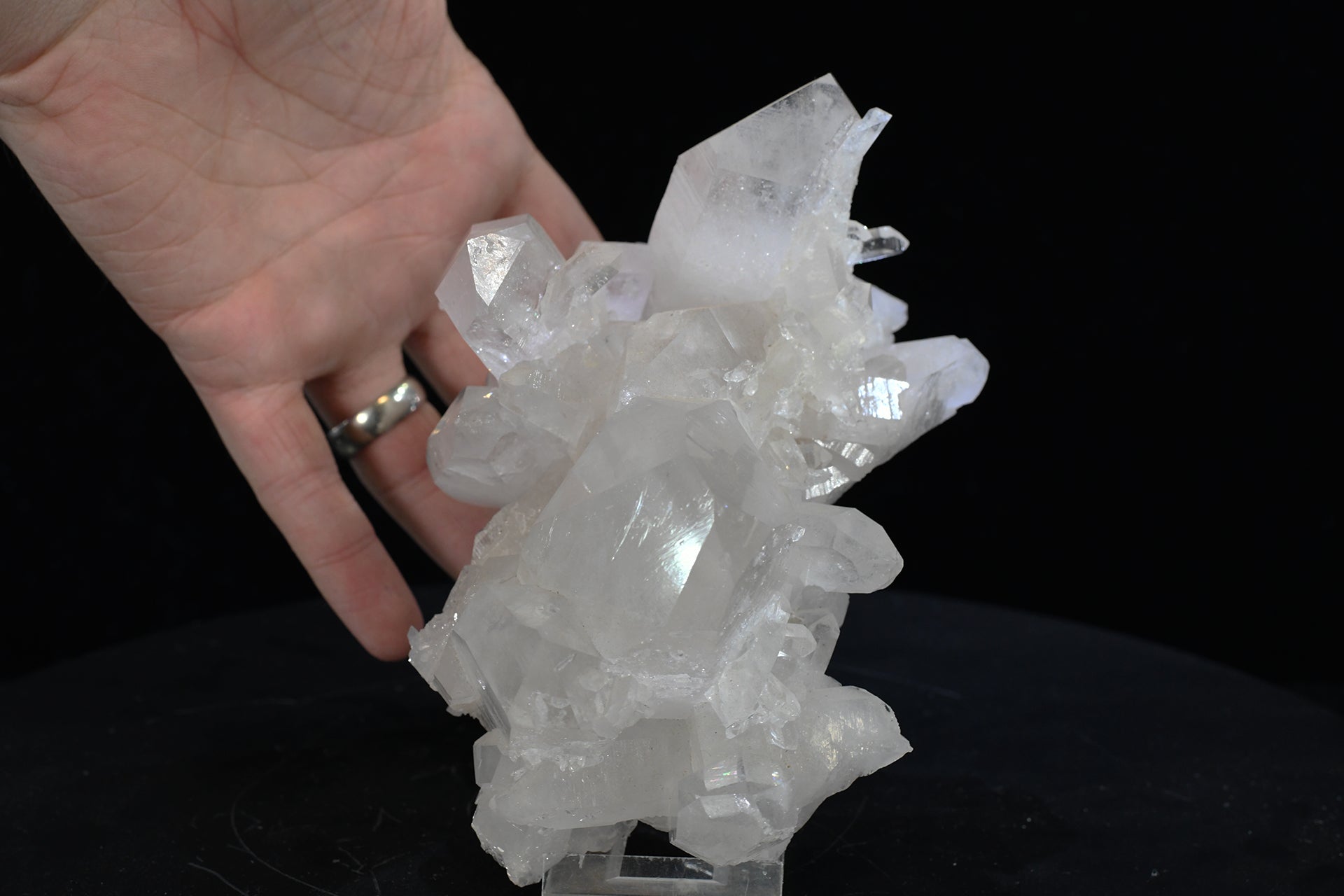 A small collector specimen quartz crystal cluster from our Garfield Lewis Claim, Fisher Mountain, Montgomery County Arkansas. 5.5in x 4in x 2.5in. 1.6 lbs. SN AM000055.